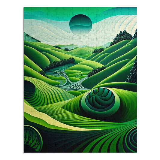 Abstract Green Rolling Fields Jigsaw Puzzle (30, 110, 252, 500,1000-Piece)