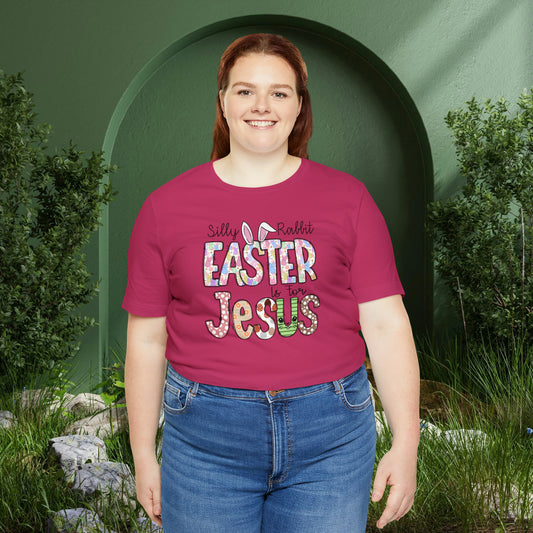 Silly Rabbit Easter is for Jesus Unisex Jersey Short Sleeve Tee