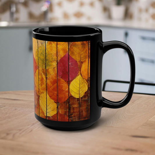 Autumn Leaves Black Mug, 15oz
