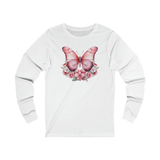 Beautiful Pink Butterfly Unisex Jersey Long Sleeve Tee