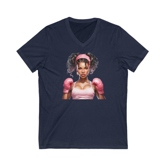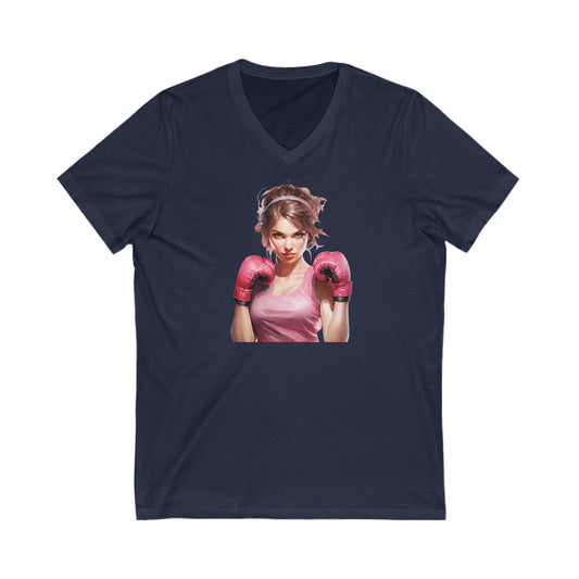 Fight Like a Girl Breast Cancer Awareness Unisex Jersey Short Sleeve V-Neck Tee