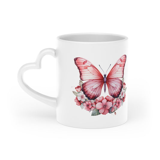 Beautiful Pink Butterfly Heart-Shaped Mug