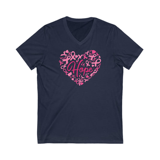 Hope Heart Breast Cancer Awareness Unisex Jersey Short Sleeve V-Neck Tee