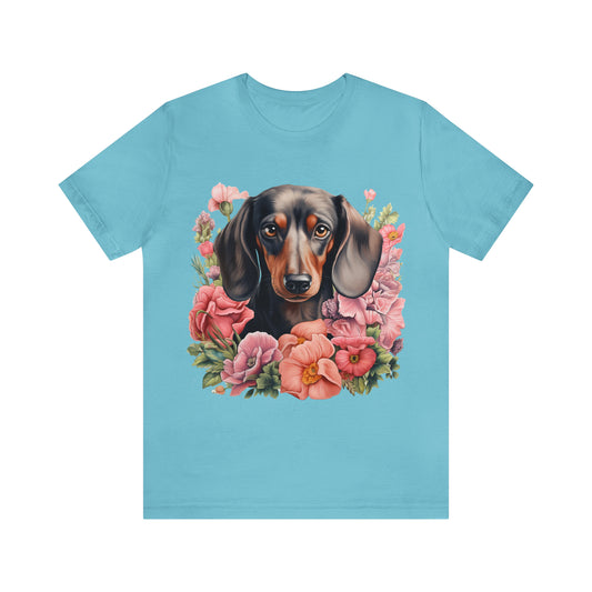 Dachshund in Flowers Unisex Jersey Short Sleeve Tee