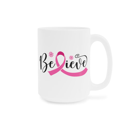 Breast Cancer Awareness Believe Pink Ribbon Coffee Cup Ceramic Mugs (11oz\15oz\20oz)