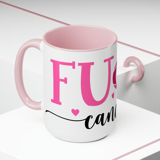 Breast Cancer Awareness Fuck Cancer Pink Ribbon Two-Tone Coffee Mugs, 15oz