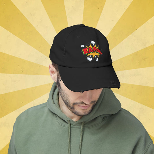 Unisex Distressed Cap - Comic Style 'KAPOW!' Graphic Hat for Bold Adventure Lovers