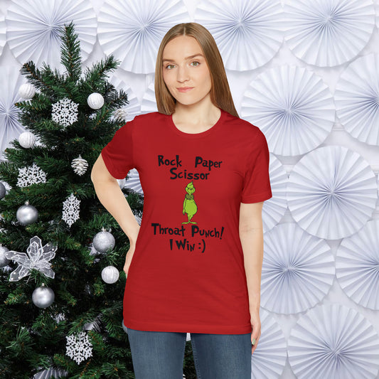 Rock Paper Scissors Throat Punch! Grinch Jersey Short Sleeve Tee