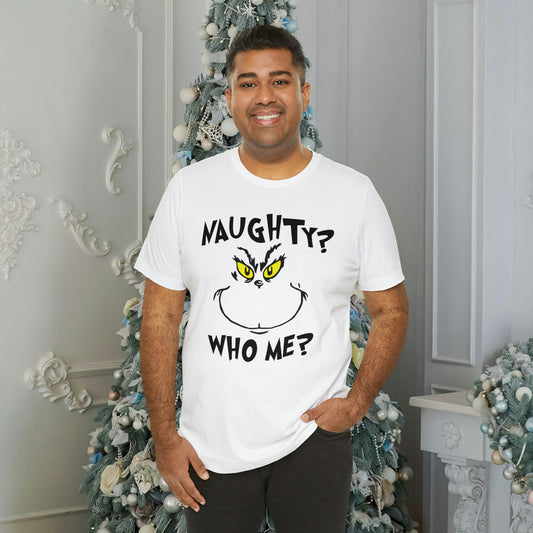 Naughty? Who Me? Grinch Unisex Jersey Short Sleeve Tee
