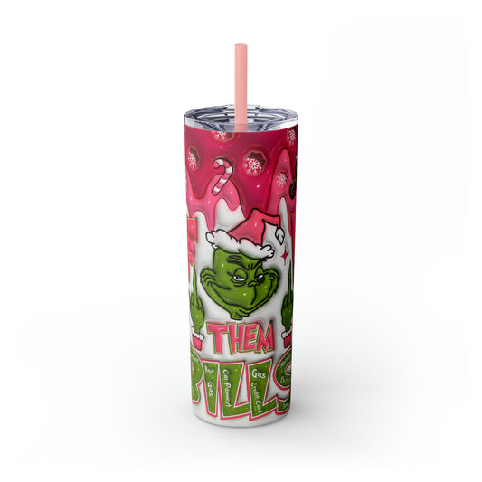 F Them Bliss Grinch Skinny Tumbler with Straw, 20oz