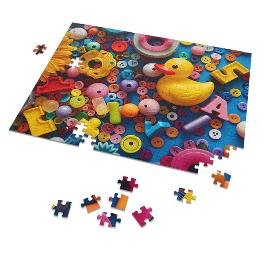 Buttons and Rubber Duckie Jigsaw Puzzle (30, 110, 252, 500,1000-Piece)