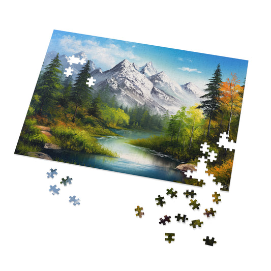 Bob Ross Style Mountain Scene Painting Jigsaw Puzzle (30, 110, 252, 500,1000-Piece)