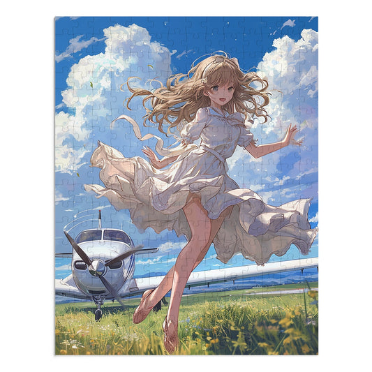 Young Anime Girl and her Airplane Jigsaw Puzzle (30, 110, 252, 500,1000-Piece)