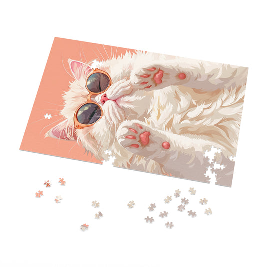 Pretty White Cat with Pink Sunglasses Jigsaw Puzzle (30, 110, 252, 500,1000-Piece)