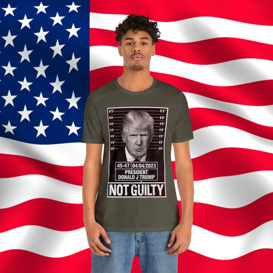 Trump Mug Shot Not Guilty Unisex Jersey Short Sleeve Tee