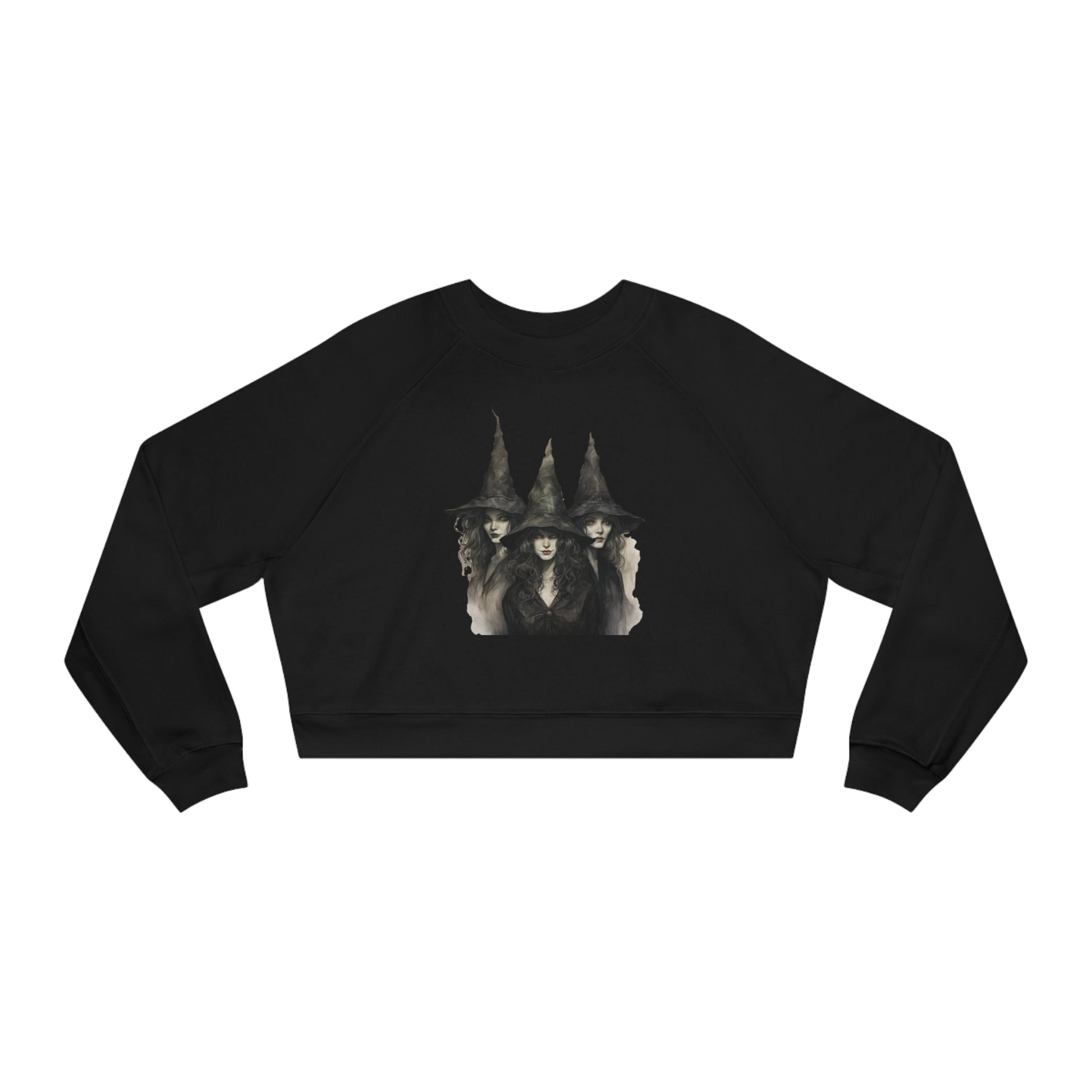Classic Witch Picture, Halloween Top, Witch Sweatshirt, Women's Cropped Fleece Pullover
