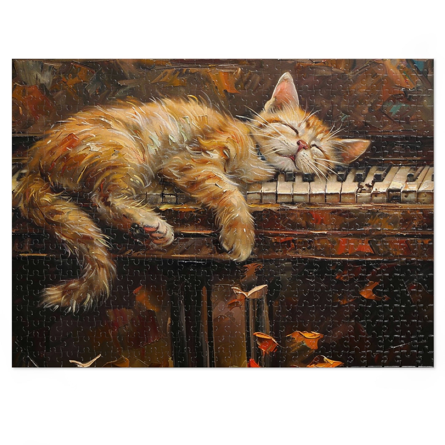 Sleeping Kitty on an Antique Piano Jigsaw Puzzle (30, 110, 252, 500,1000-Piece)